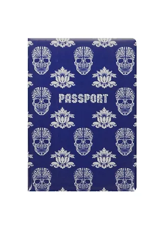 Обложка для паспорта Черепа и цветы на синем фоне