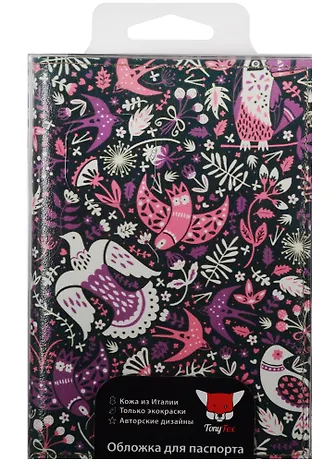 Обложка для паспорта Фиолетовые птицы (кожа) (07-010)
