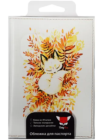 Обложка для паспорта Лисик спит (кожа) (07-008)