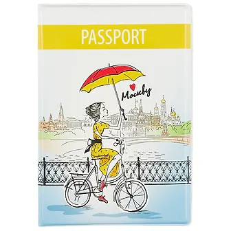 Обложка для паспорта "Москва. Девушка с зонтиком на велосипеде".