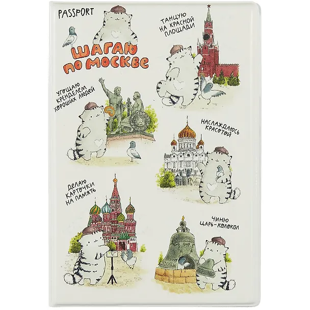 Обложка для паспорта Москва Шагаю по Москве (Котик) (ПВХ бокс)