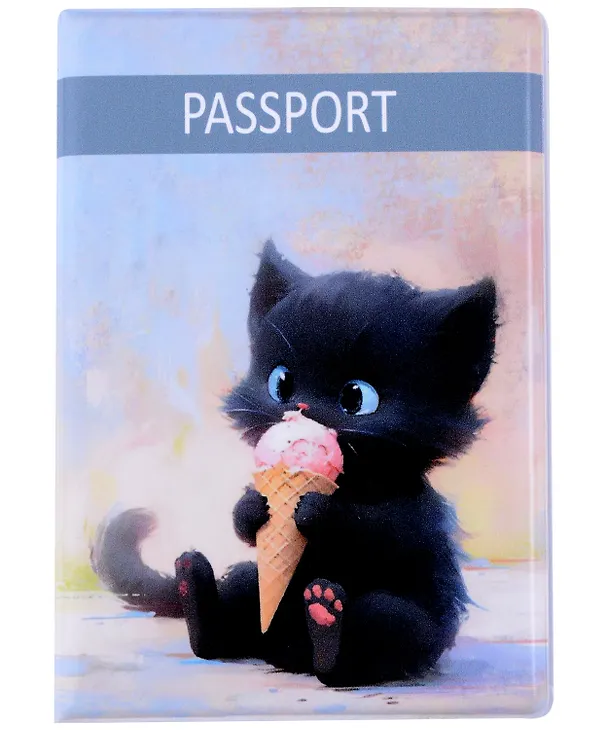 Давно хотела поменять обложку на паспорт, но никак не могла выбрать подходящую, пока не увидела эту. Очень милая, сразу привлекла мое внимание. Красивый и милый котик, рисунок очень яркий и четкий, несмотря на то, что сам кот черный. Мороженное выглядит аппетитно, особенно в лапках котика. Качество хорошее, обложка глянцевая. Цена небольшая, поэтому взяла без сомнений