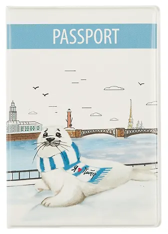 Обложка для паспорта СПб Нерпа и Нева (ПВХ бокс) (ОП2019-223)