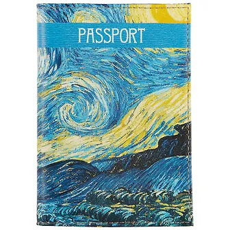 Обложка для паспорта Винсент Ван Гог Звездная ночь (кожа) (ПВХ бокс) (ОК2017-01)
