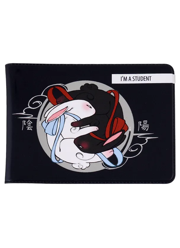 Сама обложка приятная и крепкая. На студенческом сидит хорошо, разве что немного топорщится. Милейший рисунок с зайками из магистра дьявольского культа. Замечательное украшения для студенческого.