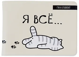 Хорошая обложка на студенческий билет.Брала в подарок.Дизайн очень креативный,подойдёт почти всем.На обложке уставший котик,если Вы также как и я устали от учёбы,вам он обязательно понравится.Надеюсь отзыв полезный.Приятного пользования♡!