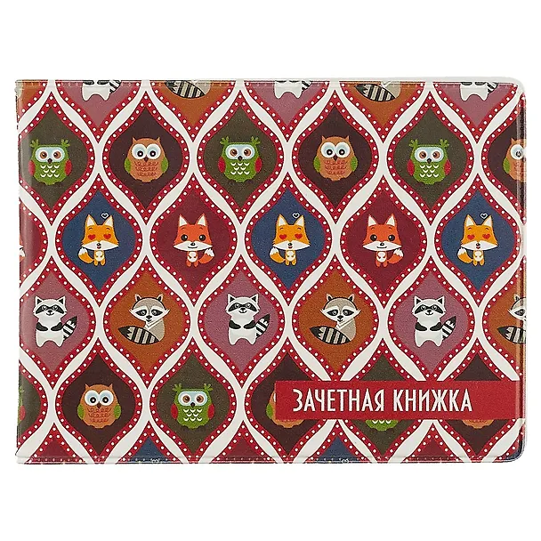 Обложка для зачетной книжки Узоры сова, лиса и енот