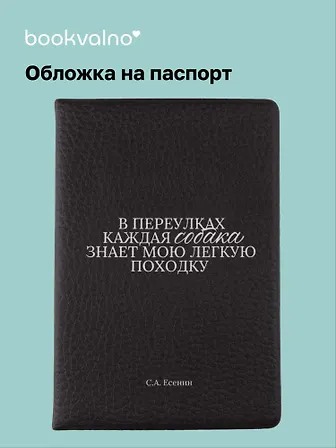 Обложка для паспорта С.А. Есенин В переулках каждая собака… — это аксессуар, который защищает ваш паспорт от повреждений и загрязнений, а также предоставляет удобство при хранении других документов.