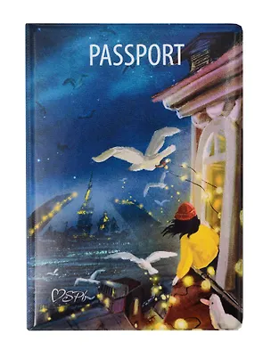 Белоснежные чайки кружат над ночным городом, яркие гирлянды мерцают на фоне разводного моста и Петропавловской крепости. С таким романтичным принтом от современной художницы Дарьи Ноксо обложка на паспорт превращается в произведение искусства.