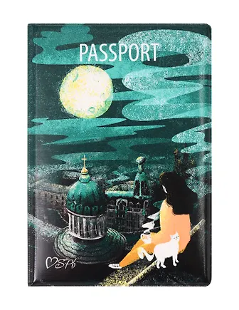 Прочная и надёжная обложка для паспорта с очаровательным принтом современной художницы Дарьи Ноксо. Рисунок, на котором изображён вид на ночной Санкт-Петербург с крыши, передаёт мистическое настроение города, а белый котик и чашка чая у героини сюжета добавляет нотку уюта. Обложка выполнена из прочного ПВХ, подойдёт для паспортов РФ и стран СНГ и хорошо защитит документ от замятых уголков, воды, пыли.
