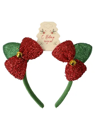 Ободок новогодний «Банты с бубенчиками» — простой способ сразу создать праздничное настроение. Мягкое текстильное основание комфортно сидит на голове и не давит, так что аксессуар можно носить весь вечер. Объёмные банты и звонкие бубенцы добавляют образу игривости и отлично смотрятся как на взрослых, так и на детях.