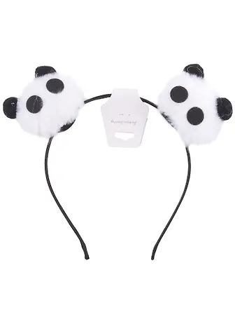 Забавный ободок с двумя пандами наверху, торчат они в разные стороны довольно прикольно, трясутся при носке, но прикреплены хорошо и не отваливаются.