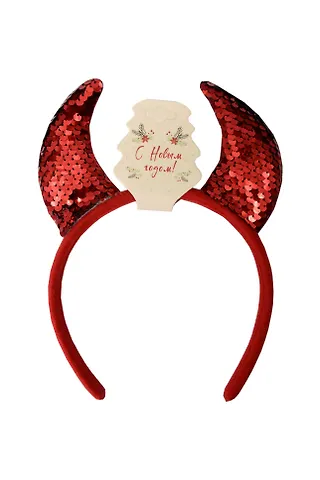 Ободок Рожки красные с пайетками (текстиль) (12-6142-HNY32)