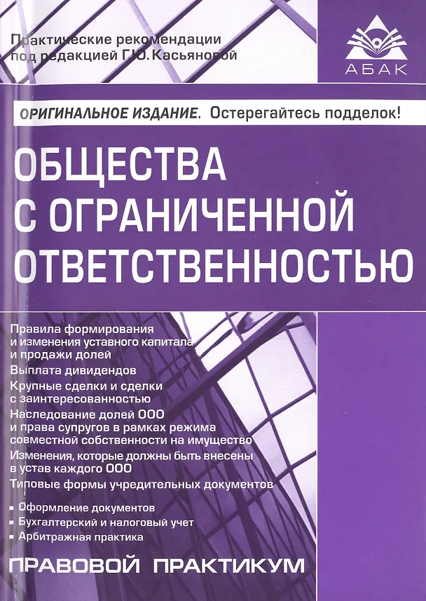 В данной книге приведены комментарии и практические рекомендации по всем основным аспектам деятельности обществ с ограниченной ответственностью, начиная с момента их создания (в том числе по формированию и изменению размеров уставного капитала, выплате доходов участникам, продаже и наследованию долей и многое другое). Также рассмотрены все произошедшие изменения в законодательстве и приведены типовые формы учредительных документов, подготовленные в соответствии с новыми требованиями.