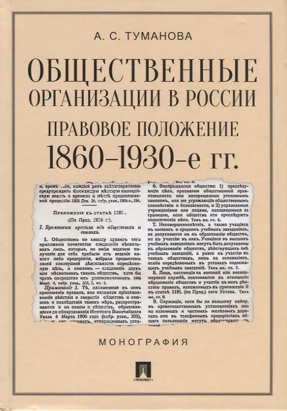 Анастасия Туманова «Общественные организации в России. Правовое положение. 1860-1930-е гг. Монография» и выбрать удобный способ его получения: самовывоз, доставка курьером