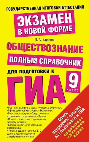 В справочнике, адресованном выпускникам 9 классов общеобразовательных учреждений, представлен материал курса «Обществознание» в объёме, проверяемом на государственной итоговой аттестации.