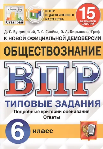Данное пособие полностью соответствует федеральному государственному образовательному стандарту (второго поколения). В пособии представлены 15 вариантов типовых заданий Всероссийской проверочной работы (ВПР) по обществознанию для учащихся 6-х классов. Ко всем заданиям даны ответы и подробные критерии оценивания. Пособие необходимо учащимся 6-х классов, учителям и методистам, использующим типовые задания для подготовки к Всероссийской проверочной работе по обществознанию.