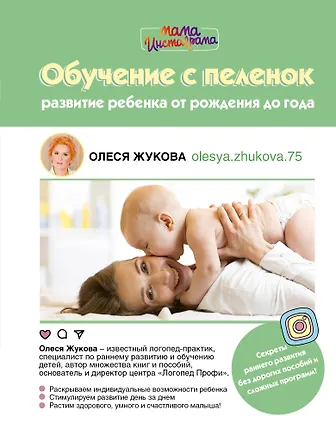 В новой книге серии «Мама инстаграма*» «Обучение с пелёнок» речь идёт о развитии ребёнка с рождения до года. В книге затронуты важные вопросы, беспокоящие молодых мам. Как научиться понимать ребёнка? Как узнать, является ли его поведение нормой или отклонением от неё? Как проверить слух и зрение? Как делать гимнастику и массаж? Чего бояться, а на что можно не обращать внимания? Благодаря пластичности нервной системы новорождённого в первые месяцы жизни мама может сделать очень многое: направить малыша на путь раскрытия его сильных качеств и подправить или устранить некоторые возможные отклонения.
