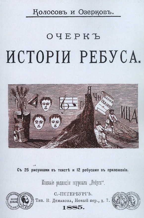 Репринт с издания. СПб 1885. С 25 рис. и 12 ребусами в приложении. История ребуса от Египта и Оссирии до ребусов России в 19 веке.