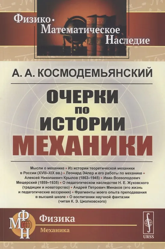 Вниманию читателей предлагается книга известного отечественного ученого А.А. Космодемьянского (1909-1988), посвященная истории механики. Работа включает два основных смысловых раздела: историю развития классической механики в России и мысли автора о преподавании механики в высшей школе. Исследованы малоизвестные материалы по механике XVIII века; детально охарактеризована прогрессивная система преподавания курса теоретической механики в вузах, созданная учителем автора А.П. Минаковым. Рассматривается научное наследие и вклад в развитие механики таких ученых, как Л. Эйлер, А.Н. Крылов, И.В. Мещерский, К.Э. Циолковский и др. Для физиков, историков науки, преподавателей и студентов физико-матема