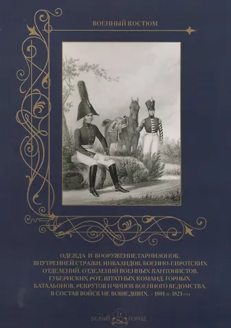 .Издательство "Белый город" представляет вниманию читателя неповторимый альбом из серии "Военный костюм". Подробное описание одежды и вооружения гарнизонов, внутренней стражи, инвалидов, военно-сиротских отделений, отделений военных кантонистов, губернских рот, штатных команд, горных батальонов, рекрутов и чинов военного ведомства, в состав войск не вошедших, с 1801 по 1825 год дополн