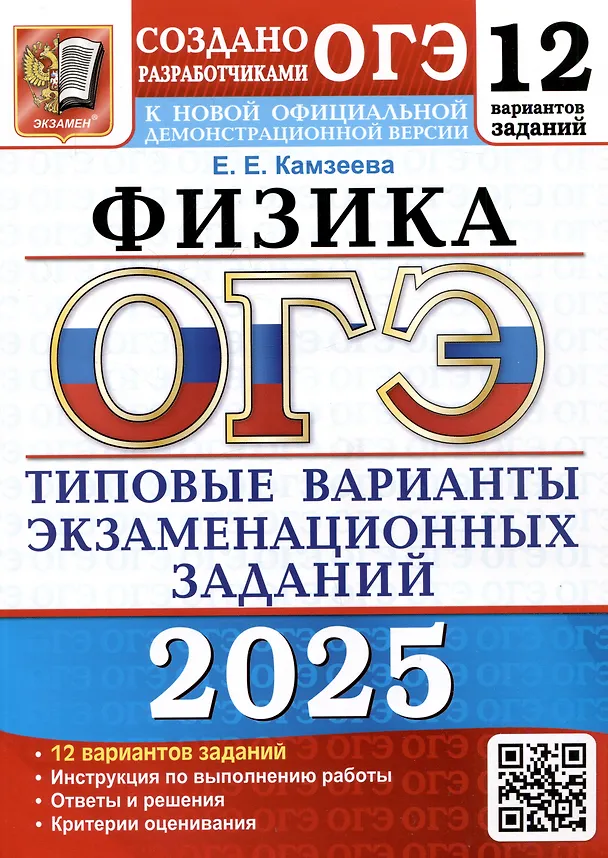 Автор заданий - ведущий специалист, принимающий непосредственное участие в разработке методических материалов для подготовки к выполнению контрольных измерительных материалов ОГЭ. В пособие включены 12 тренировочных типовых вариантов экзаменационных заданий, которые по структуре, содержанию и уровню сложности аналогичны контрольным измерительным материалам ОГЭ по физике. Справочные данные, которые необходимы для решения всех вариантов, даются в начале сборника. После выполнения вариантов правильность своих ответов учащийся может проверить, воспользовавшись таблицей ответов в конце книги. В пособии приводится разбор решений одного из вариантов. Для заданий части 2, требующих развёрнутого отве