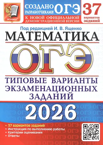 Авторы заданий - ведущие специалисты, принимающие непосредственное участие в разработке методических материалов для подготовки к выполнению контрольных измерительных материалов ОГЭ. Пособие содержит 37 типовых вариантов экзаменационных заданий по математике. Все задания составлены с учётом особенностей и требований Основного государственного экзамена, полностью соответствуют демоверсии, спецификации и кодификатору ОГЭ 2026 года по математике, опубликованным на сайте ФИПИ. Назначение пособия - отработка практических навыков учащихся по подготовке к экзамену по математике в 9 классе. В сборнике даны ответы ко всем заданиям. Пособие адресовано учителям и методистам, использующим типовые вариант