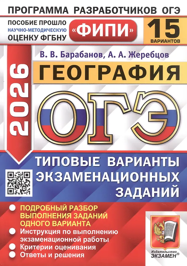 ОГЭ 2026. ФИПИ. География. 15 вариантов. Типовые варианты экзаменационных заданий