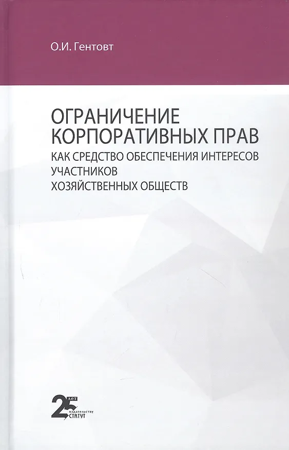 Ограничение корпоративных прав как средство обеспечения интересов участников хозяйственных обществ: монография