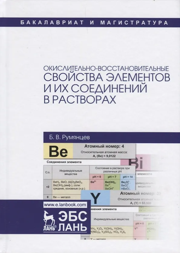 Справочник содержит сведения об основных термодинамически устойчивых формах соединений элементов и электродные потенциалы парциальных реакций превращений соединений элементов в водных растворах. Впервые для всех элементов построены ряды Латимера для водных растворов с pH = 0, 7, 14 и диаграммы Фроста. Справочник является необходимым для разумного и обоснованного составления уравнений окислительно-восстановительных процессов. Пособие предназначено для студентов вузов, обучающихся по направлениям подготовки и специальностям, входящим в УГС: "Химия", "Химические технологии", "Промышленная экология и биотехнологии", "Образование и педагогические науки" химического профиля, а также широкому кругу