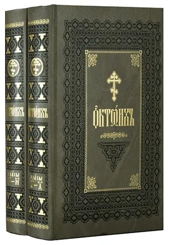 Издание Октоиха традиционно разделено на два тома, содержащих, соответственно, молитвословия 1–4 и 5–8 гласов.