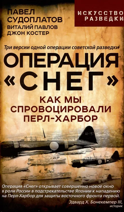Впервые об этой операции в середине девяностых годов рассказал в своей книге «Операция «Снег». Пятьдесят лет во внешней разведке»» Виталий Павлов. Причем описание операции заняло несколько десятков страниц. Остальное — автобиография автора и рассказ о первых годах службы во внешней разведке. Суть операции «Снег» по версии автора: заставить руководство США через нашего агента влияния поверить в то, что Япония готова напасть на Америку. В реальности все было сложнее. Собственно об этом данная книга — «Операция "Снег". Как мы спровоцировали Перл Харбор». Точнее четыре версии, назову это так, событий предшествующих Перл-Харбору. У книги 4 автора, а не два - как обозначено на обложке.