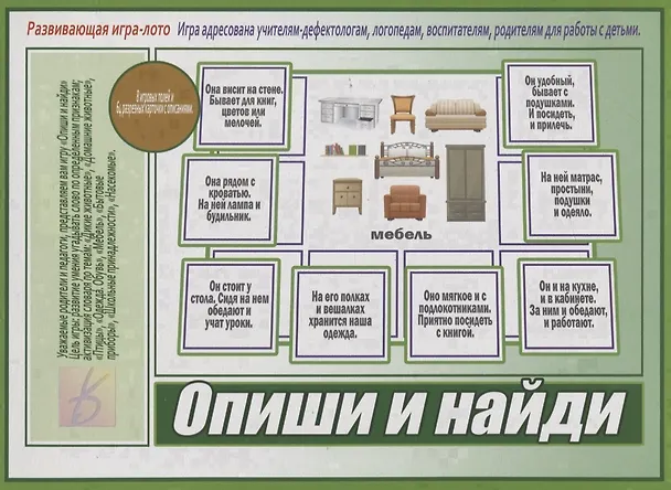 «Опиши и найди». Развивающая игра-лото (Адресована учителям-дефектологам, логопедам, воспитателям, родителям для работы с детьми)