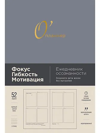 Вы когда-нибудь задумывались о том, почему одни люди легко достигают своих целей, а другие постоянно откладывают все на потом? Ответ кроется в осознанности и планировании. Именно в этом могут помочь ежедневники. Но подыскивая подходящий, мы выбираем не просто блокнот для записей, а инструмент, с помощью которого сможем четко структурировать свои задачи, чтобы достигать большего, но при этом не выгорать в погоне за желаемым, не надрываться от груза забот и плодотворно заниматься делом, успевая полноценно жить. Именно для этих целей Юлия Головина, автор позитивного ежедневника Visual Planner, создала новый ежедневник осознанности, уникальный «О’планнер: Фокус. Гибкость. Мотивация».
