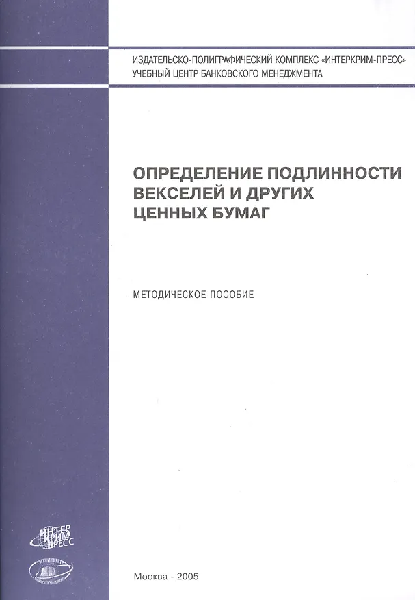 В настоящем методическом пособии представлены учебные материалы об основных элементах защиты ценных бумаг, видах подделок и методике определения подлинности; рассматриваются способы обнаружения подделок ценных бумаг по их реквизитам, важнейшими составляющими которых являются подписи и оттиски печатей и штампов. В качестве иллюстрации подделки ценных бумаг рассматривается фальшивый вексель Сбербанка России.
