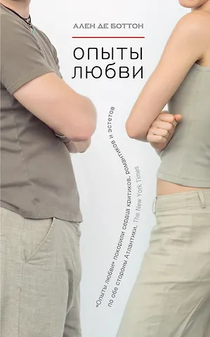Первый же роман де Боттона "Опыты любви", написанный в возрасте двадцати трех лет, покорил сердца критиков, романтиков и эстетов по обе стороны Атлантики. "Опыты любви" рисуют картину современных взаимоотношений между двумя молодыми людьми. Повествование от первого лица напоминает по форме не то популярный трактат, проиллюстрированный схемами, диаграммами и рисунками, не то колонку психолога в модном журнале. Остроумные и проницательные наблюдения, своеобразные сравнения и универсальность описываемых ситуаций - вот лишь немногие из удивительных открытий, которые обещает читателю эта книга.