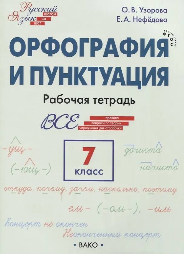В пособии представлены основные правила орфографии и пунктуации, изучаемые в 7 классе на уроках русского языка, и упражнения для закрепления полученных навыков. Удобная структура книги позволит быстро находить необходимые темы. Предлагаемый материал поможет ученикам начать качественную подготовку к ОГЭ и ЕГЭ по русскому языку. В конце пособия приведены ответы ко всем заданиям. Пособие составлено в соответствии с требованиями ФГОС основного общего образования. Предназначается учителям, ученикам и их родителям.