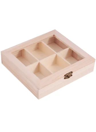 Органайзер со стеклом, 6 отделений, 14,5х18х3,8 см( дерево)