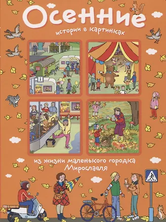 Книга рассказывает об одном осеннем дне из жизни маленького городка Мирославля. Его жители спешат по своим обычным делам, а с некоторыми происходят разные забавные приключения. В книге много деталей, и по её страничкам можно бродить бесконечно. Это прекрасное пособие для развития внимания и обучения детей рассказу по картинкам. В конце книги вы найдёте занимательные задания к каждому развороту.