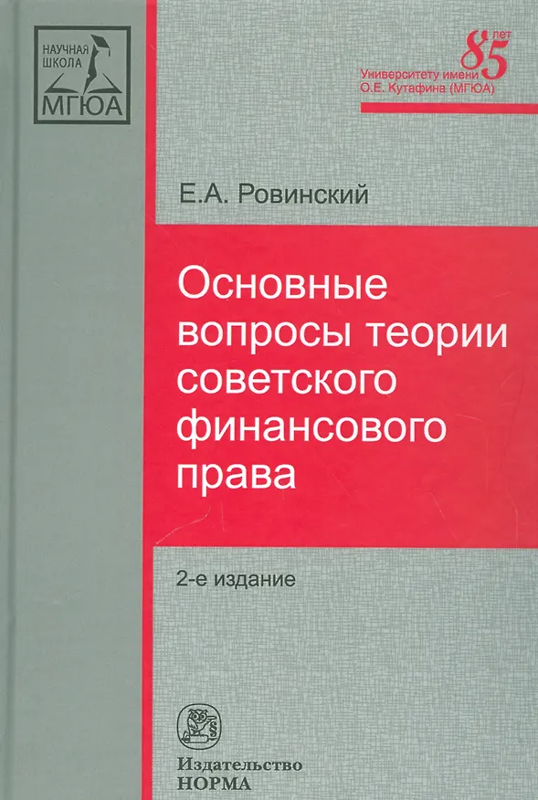 .Монография Е. А. Ровинского была впервые опубликована в 1960 г. и сыграла важную роль в становлении финансового права как самостоятельной отрасли права.
