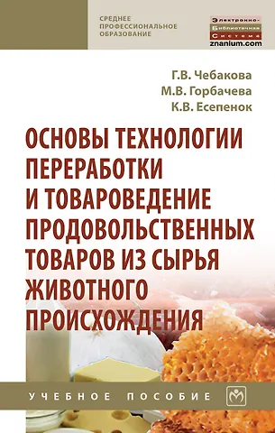 Рассмотрены технологии получения молока и молочных продуктов, технологии убоя сельскохозяйственных животных, птицы и кроликов, товароведные характеристики молока и молочных продуктов, мяса убойных животных, субпродуктов, топленых жиров, колбасных изделий, мясных консервов и полуфабрикатов, куриных яиц и яичных продуктов.