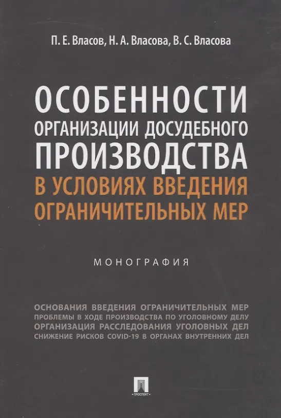 Особенности организации досудебного производства в условиях введения ограничительных мер. Монография