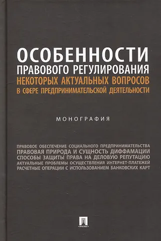 Особенности правового регулирования некоторых актуальных вопросов в сфере предпринимательской деятельности: монография