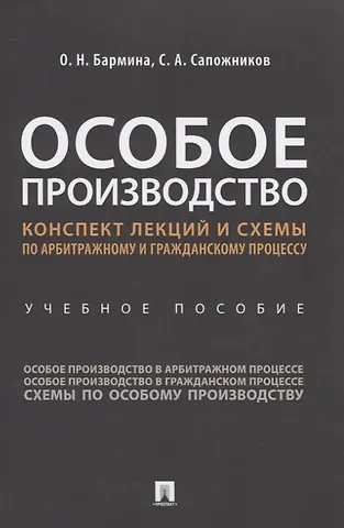 Учебное пособие разработано авторами по учебным дисциплинам «Арбитражный процесс», «Гражданский процесс» и содержит конспект лекций, примеры из судебной практики, а также схемы по особому производству в арбитражном и гражданском процессах.