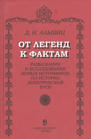 Книга доктора исторических наук, заслуженного деятеля науки РФ Д.Н.Альшица "От легенд к фактам. Разыскания и исследования новых источников по истории допетровской Руси" посвящена проблемам истории допетровской Руси, а также вопросам источниковедения. Героями книги выступают как исторические личности - Александр Невский, Дмитрий Донской, Иван Грозный, Екатерина II, так и многие выдающиеся русские ученые: историки С.М.Соловьев, В.О.Ключевский, С.Ф.Платонов, филологи А.А.Шахматов, Д.С.Лихачев и др.