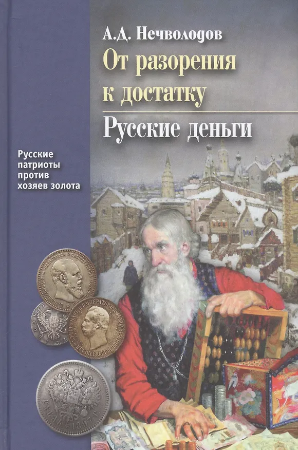 Генерал Александр Дмитриевич Нечволодов (1864-1938) многим известен как историк, автор фундаментального труда «Сказание о Русской земле». Меньше известно о том, что он хорошо разбирался в экономике и финансах своего времени. В книге содержатся две основные его работы по теме финансов и золота: «От разорения к достатку» (1906) и «Русские деньги» (1907). Обе небольшие по формату работы являются образцами глубокого понимания тайных механизмов функционирования международных финансов и простого, лаконичного изложения их сути. Работы объясняют глубинные причины многих политических событий в Европе XIX — XX вв. и дореволюционной России, представляют большой интерес для тех, кто хотел бы понять, что