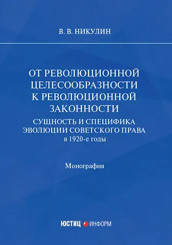 От революционной целесообразности к революционной законности. Сущность и специфика эволюции советского права в 1920-е годы: монография