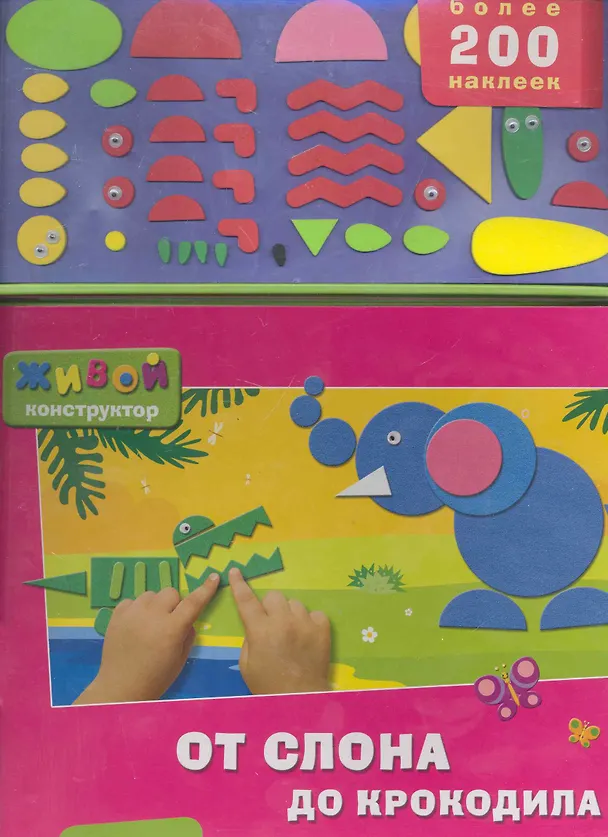 От слона до крокодила / (Более 200 наклеек) (Живой конструктор) (картон) Лазаревич И. (Белфакс)