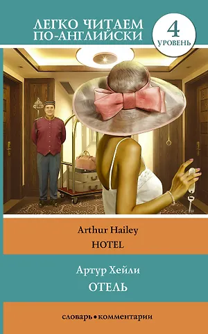 Отличная книга для тех, кто изучает английский язык и хочет читать на нем интересные произведения. В этом издании роман приведен в адаптированном виде, подходит для среднего уровня владения языком. Некоторые сложные выражения переводятся в сносках. В конце книги есть словарь, в котором можно посмотреть незнакомые слова. Роман читается довольно легко, он очень увлекательный, хочется поскорее узнать, что будет дальше. История рассказывает о менеджере отеля, его служащих, постояльцах, нынешнем владельце и его помощнике, будущем владельце, поваре, профессиональном отельном воре. Их жизни переплетаются самым неожиданным образом. Книга очень легкая, с красивой обложкой, бумага шершавая, плотная. Мне очень понравилась книга читать ее приятно и полезно для улучшения уровня владения английским языком.
