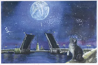 Открытка 10*15 СПб коты Дворцовый мост, О/008/001.